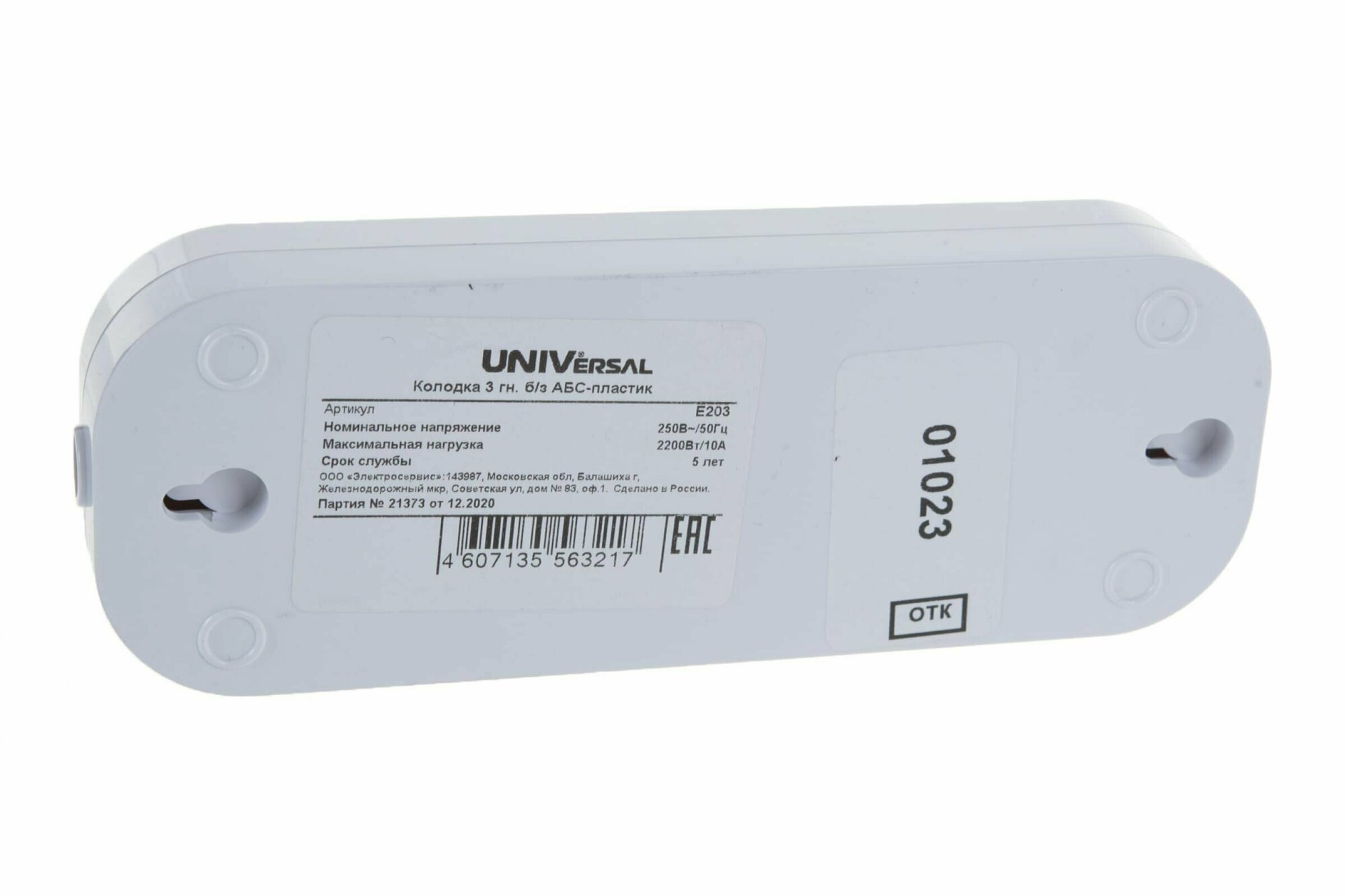 UNIVersal Колодка 3 гн. б/з AБС-пластик E203