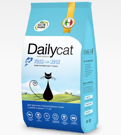Dailycat ADULT Steri lite Fish and Rice корм для взрослых стерил кошек с рыбой и рисом 1,5 кг