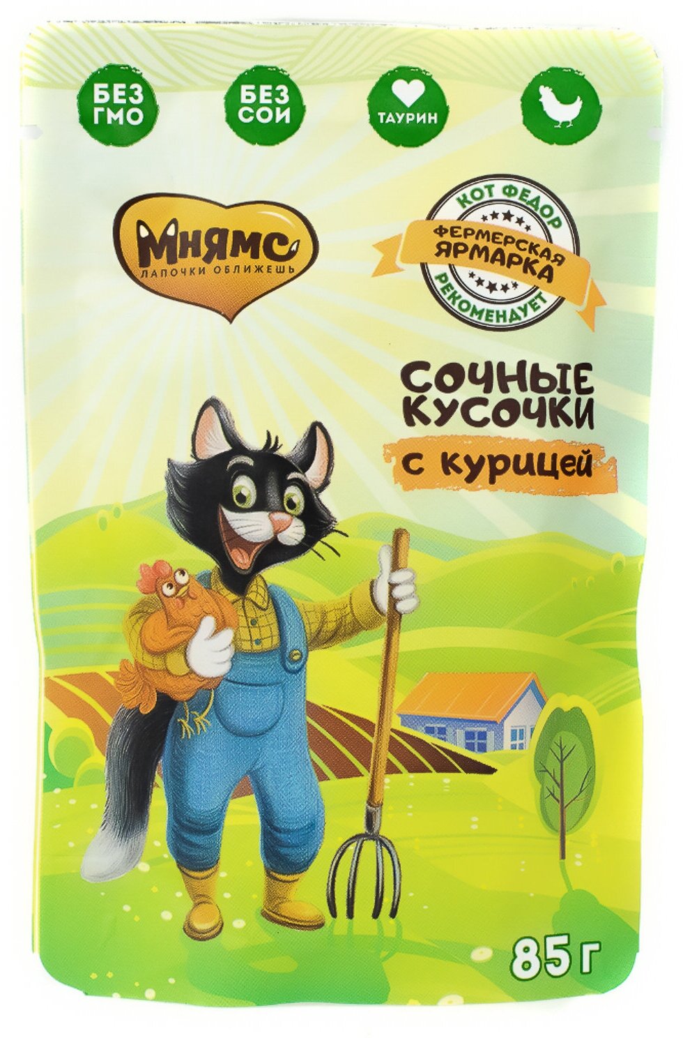 Мнямс 85гр для кошек сочные кусочки с курицей «Фермерская ярмарка» линия Кот Федор (пауч)