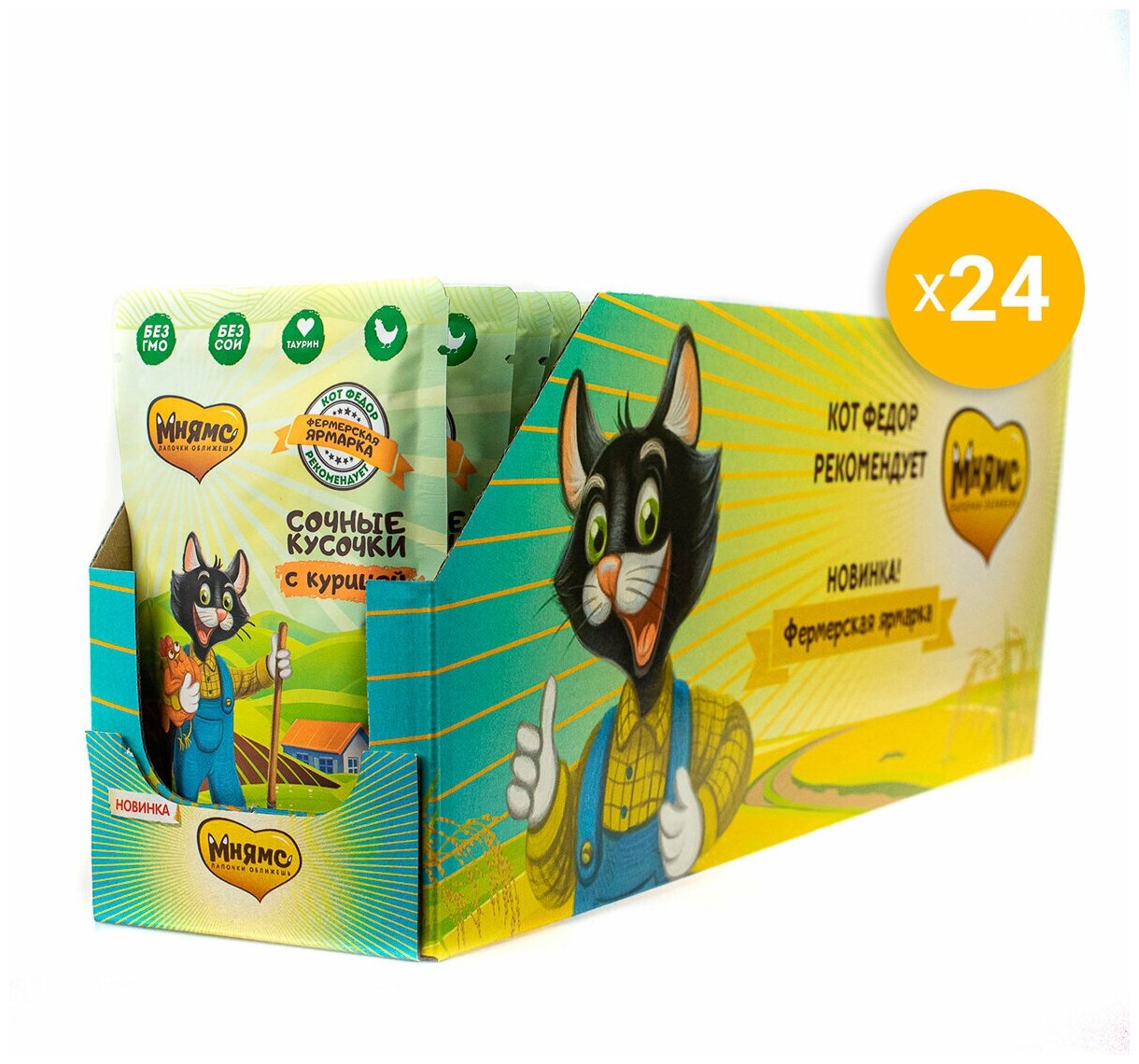 Мнямс сочные кусочки для кошек с курицей «Фермерская ярмарка» линия Кот Федор 85г 24 шт