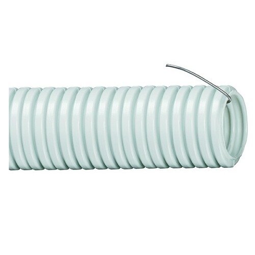 Труба гофрированная легкая с зондом серая ПВХ д 25 мм, бухта 25 м