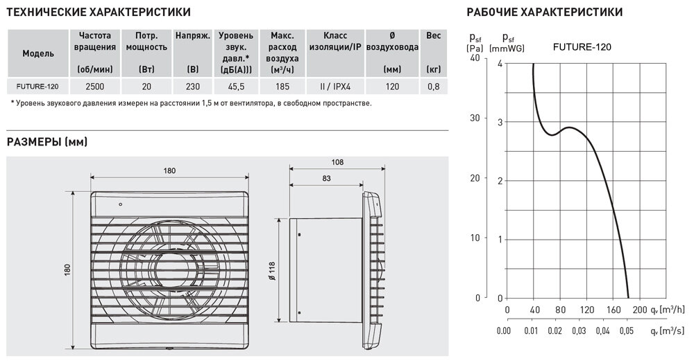 | Воздухообмен | 180 м³/час |