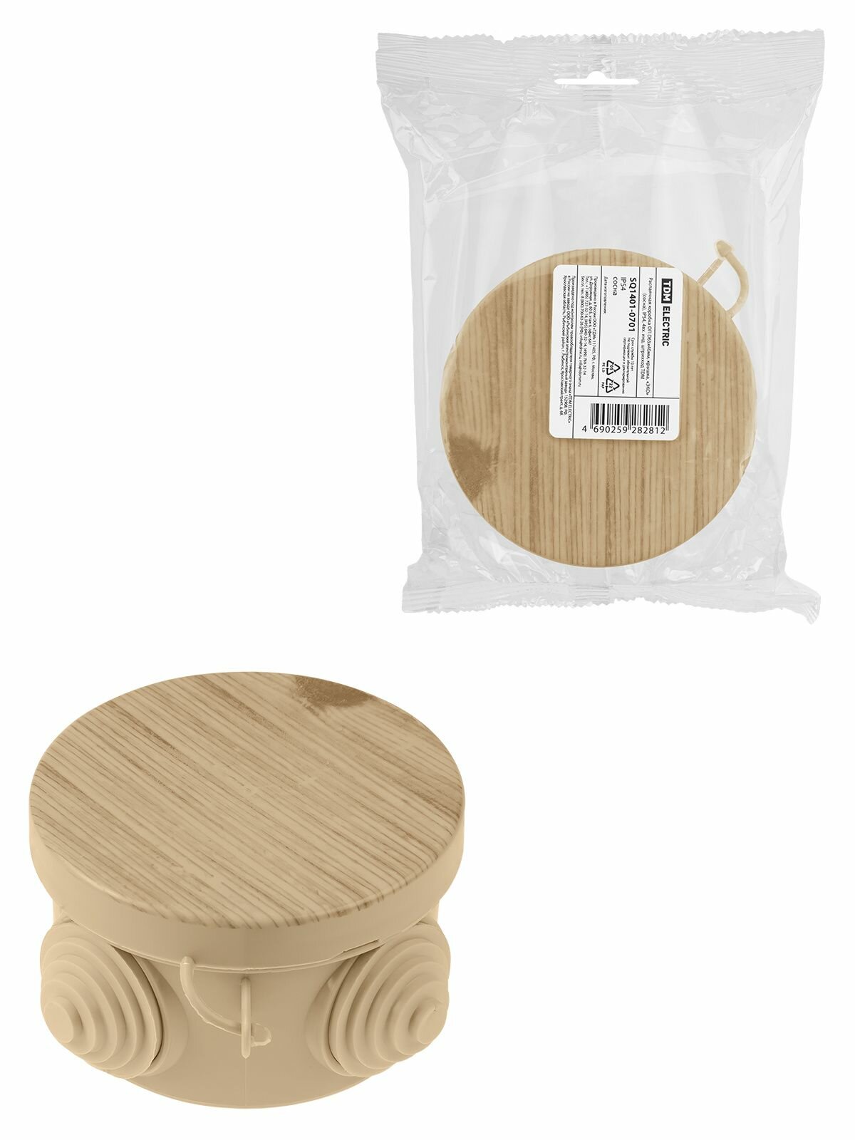 Коробка распаячная TDM ОП D65х40мм, крышка, сосна, IP54, 4входа, индивидуальный штрихкод SQ1401-0701
