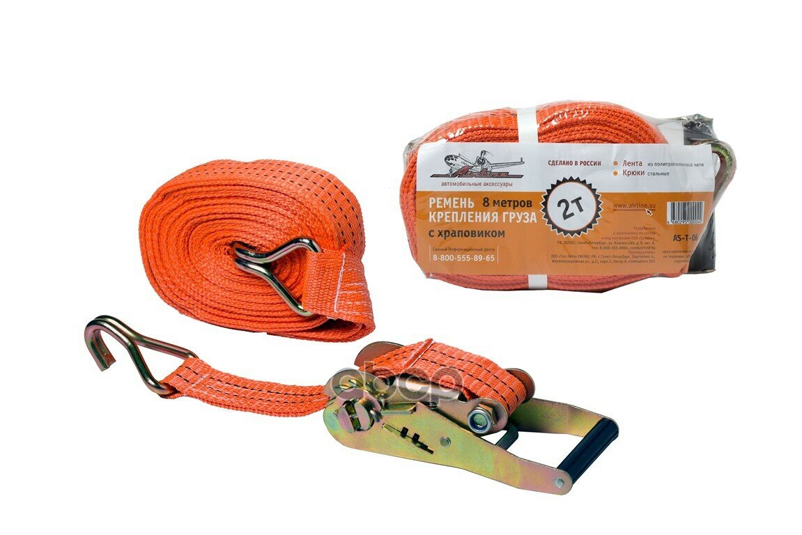 Ремень Крепления Груза С Храповиком 8 М, 2 Т Airline (As-T-06) AIRLINE арт. AST06