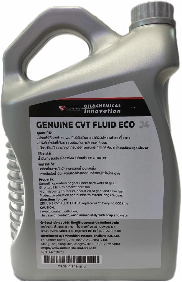 Масло трансмиссионное Mitsubishi CVT Fluid ECO J4 (таиланд), (4л) + лейка, жидкость АКПП синтетика для коробки передач Мицубиси MZ320262, РТЛ
