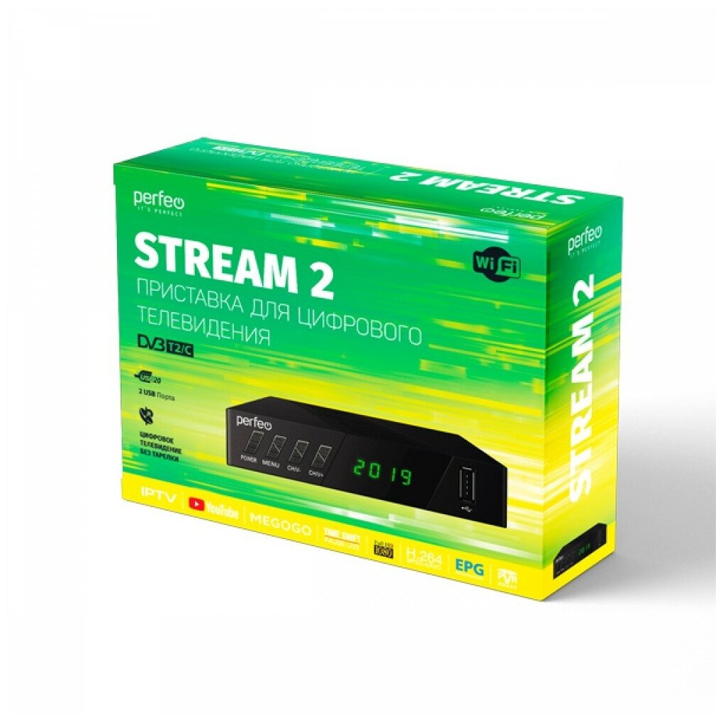 Perfeo DVB-T2 C приставка "STREAM-2" для цифр.TV, Wi-Fi, IPTV, HDMI, 2 USB, DolbyDigital, пульт ДУ PF A4488