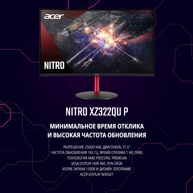 Монитор Acer 32" Nitro XZ322QUPbmiiphx 2560x1440 VA WLED 165Гц 4ms FreeSync HDMI DisplayPort