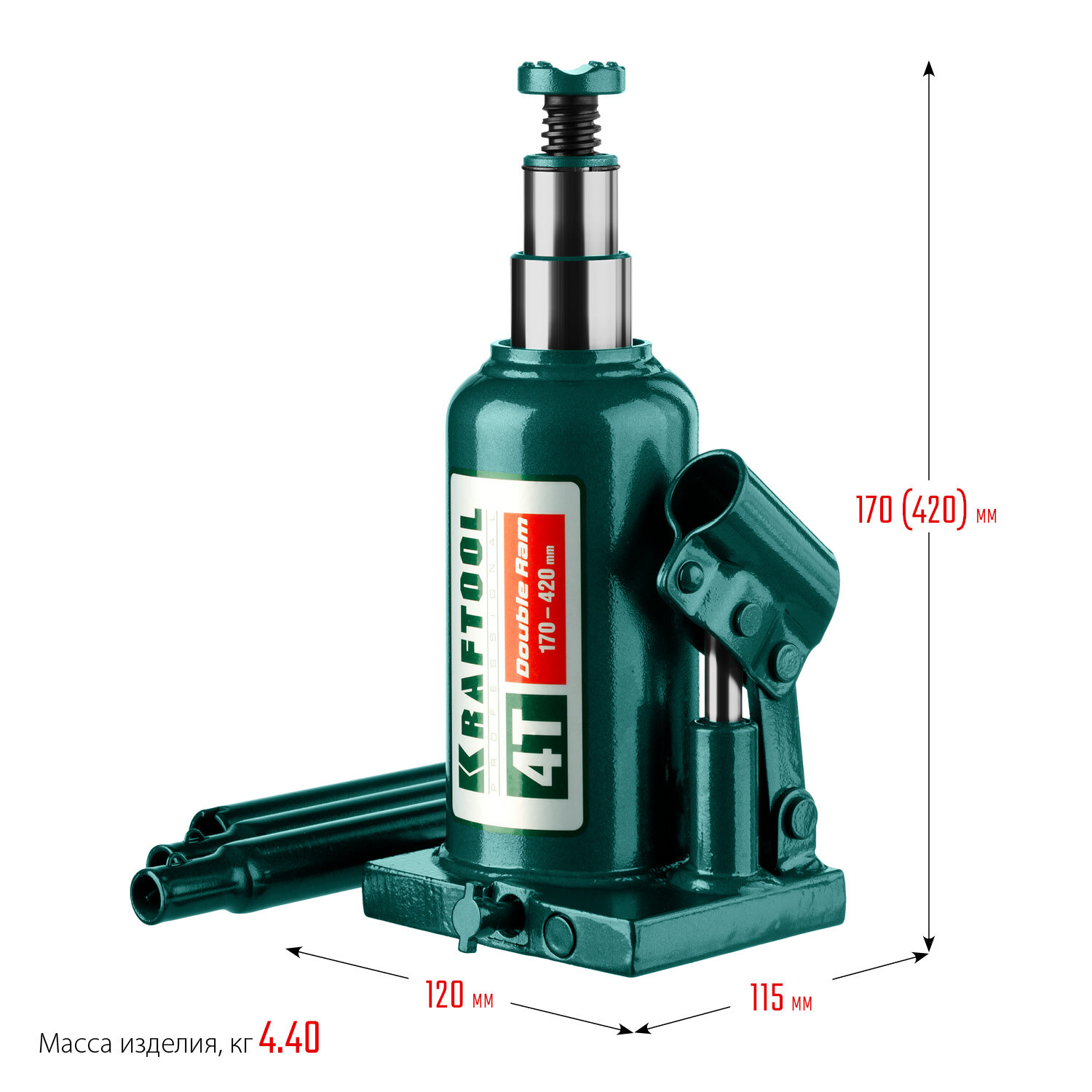 Гидравлический бутылочный домкрат Kraftool Double Ram 4т, 170-420мм (43463-4)