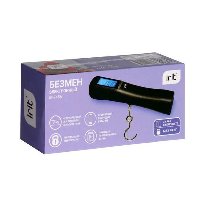 Безмены IRIT Безмен Irit IR-7456, электронный, до 40 кг, ЖК-дисплей, чёрный