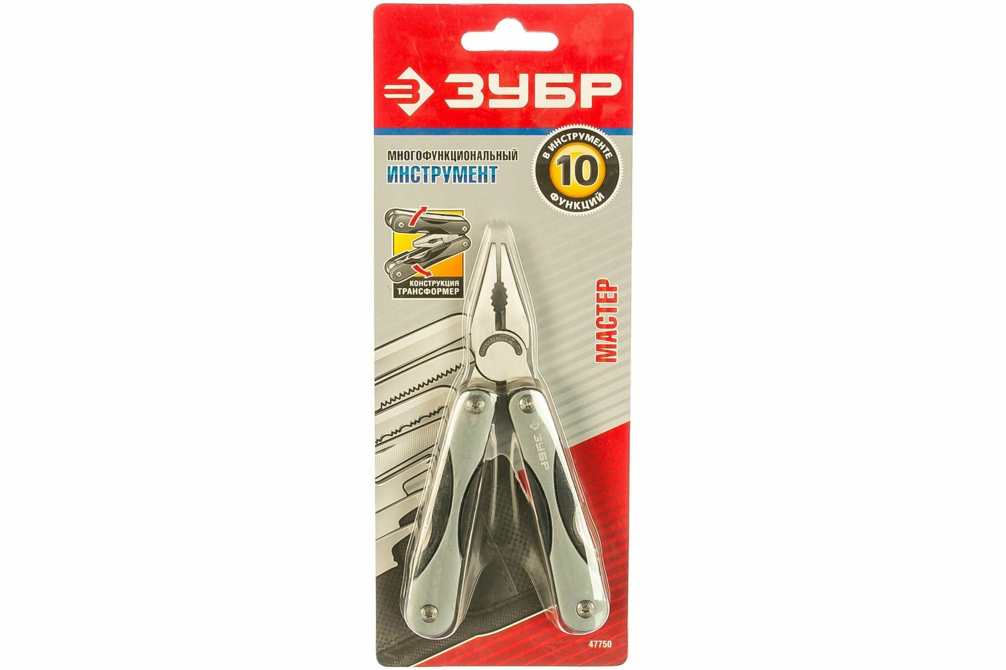 Мультитул Зубр Мастер, 10 функций, серый [47750]