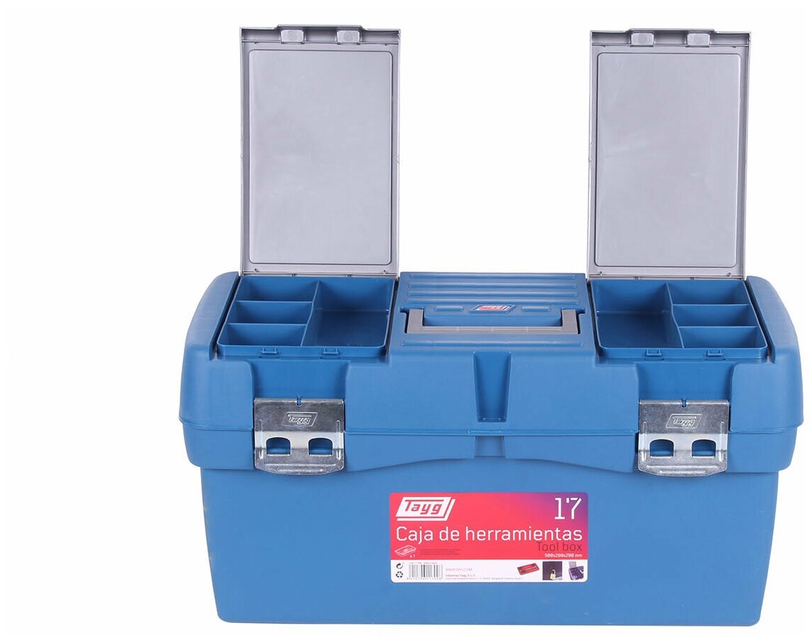 Ящик для инструмента TAYG №17, с лотком, 2 органайзерами, метал. замки, синий, 580х290х290 мм