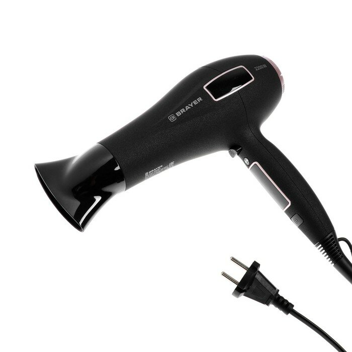 Фен BRAYER BR3001, 2200 Вт, 6 скоростей, 8 температурных режимов, сенсор, чёрный
