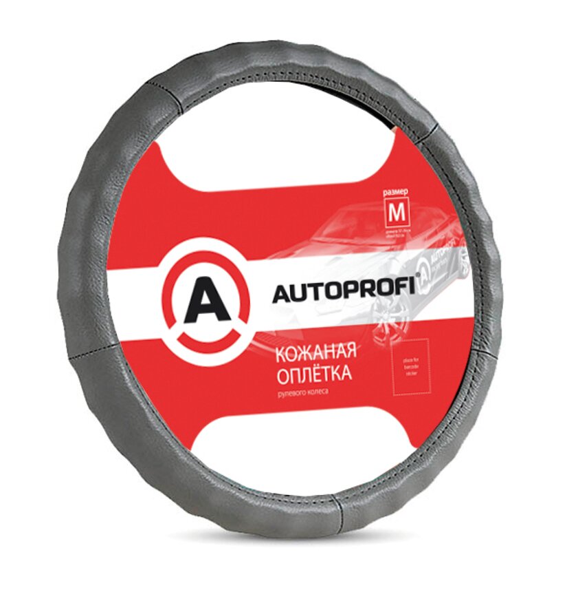 Оплётка руля Autoprofi натуральная кожа серая ребристая L