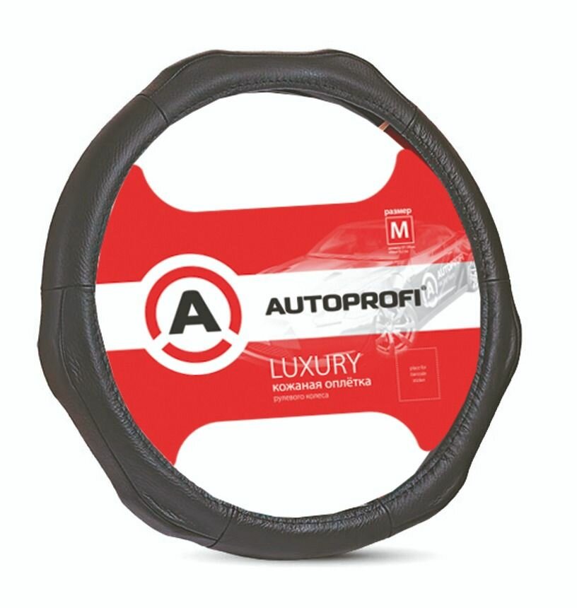 AUTOPROFI Оплётка руля Luxury кожа, 3 рельефные вставки (черный) (М)