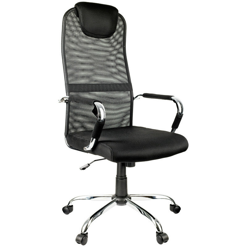 Компьютерное кресло руководителя Helmi HL-E25 "Intelligent"/Сиденье и спинка из черной ткани и сетки, с подлокотниками, на колесиках, с высокой регулируемой спинкой/Офисный компьютерный стул, мебель для дома