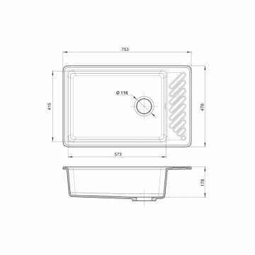 GranFest QUARZ Мойка чаша+кр 753*476 (песок) арт.GF-ZL-