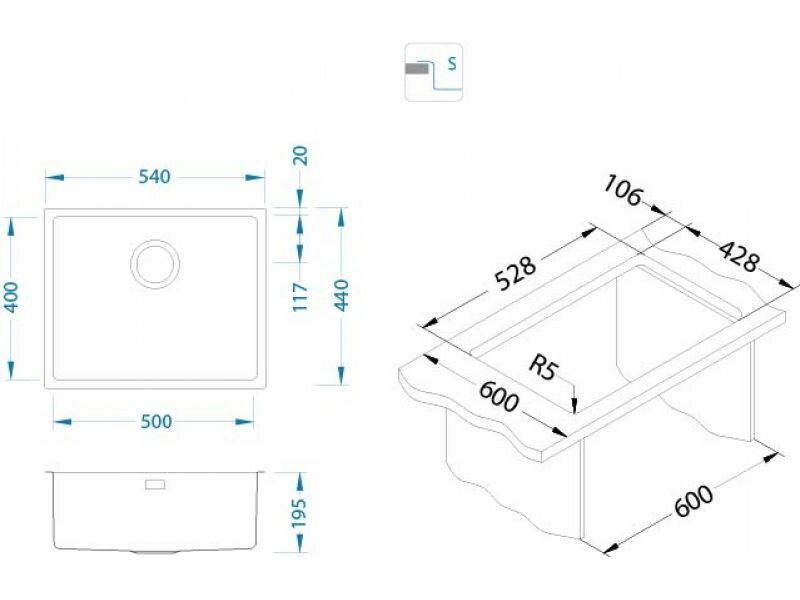 Мойка KOMBINO 50 KMB 90 FI 542X442 F/S