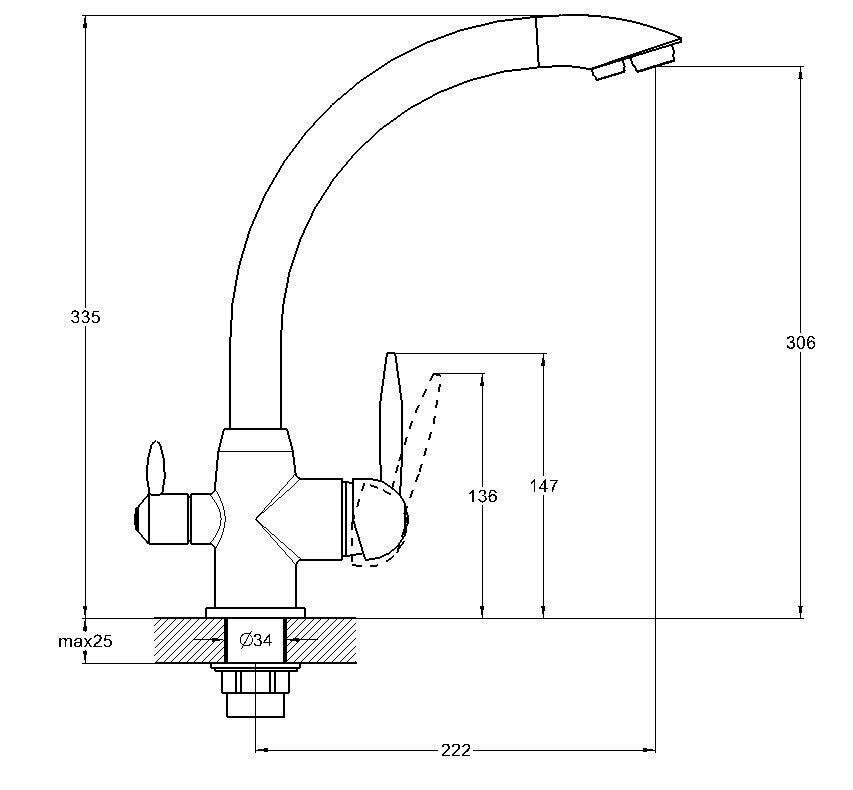 G-lauf Смеситель для кухни мойки с высок поворотн изливом и фильтр для пит воды, песоч GOP18-A093KS