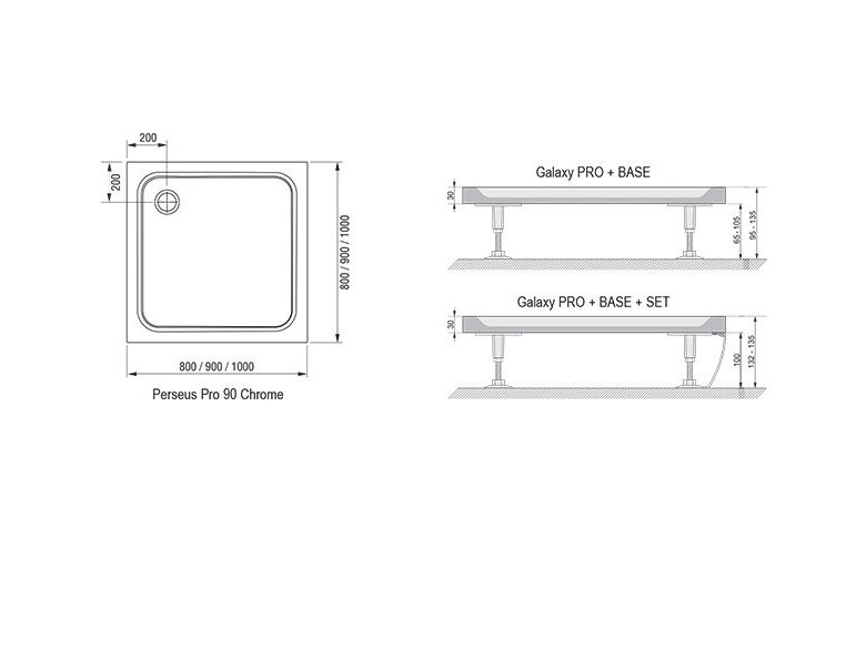 Поддон для душа Ravak Galaxy Pro Chrome PERSEUS PRO-90 CHROME белый