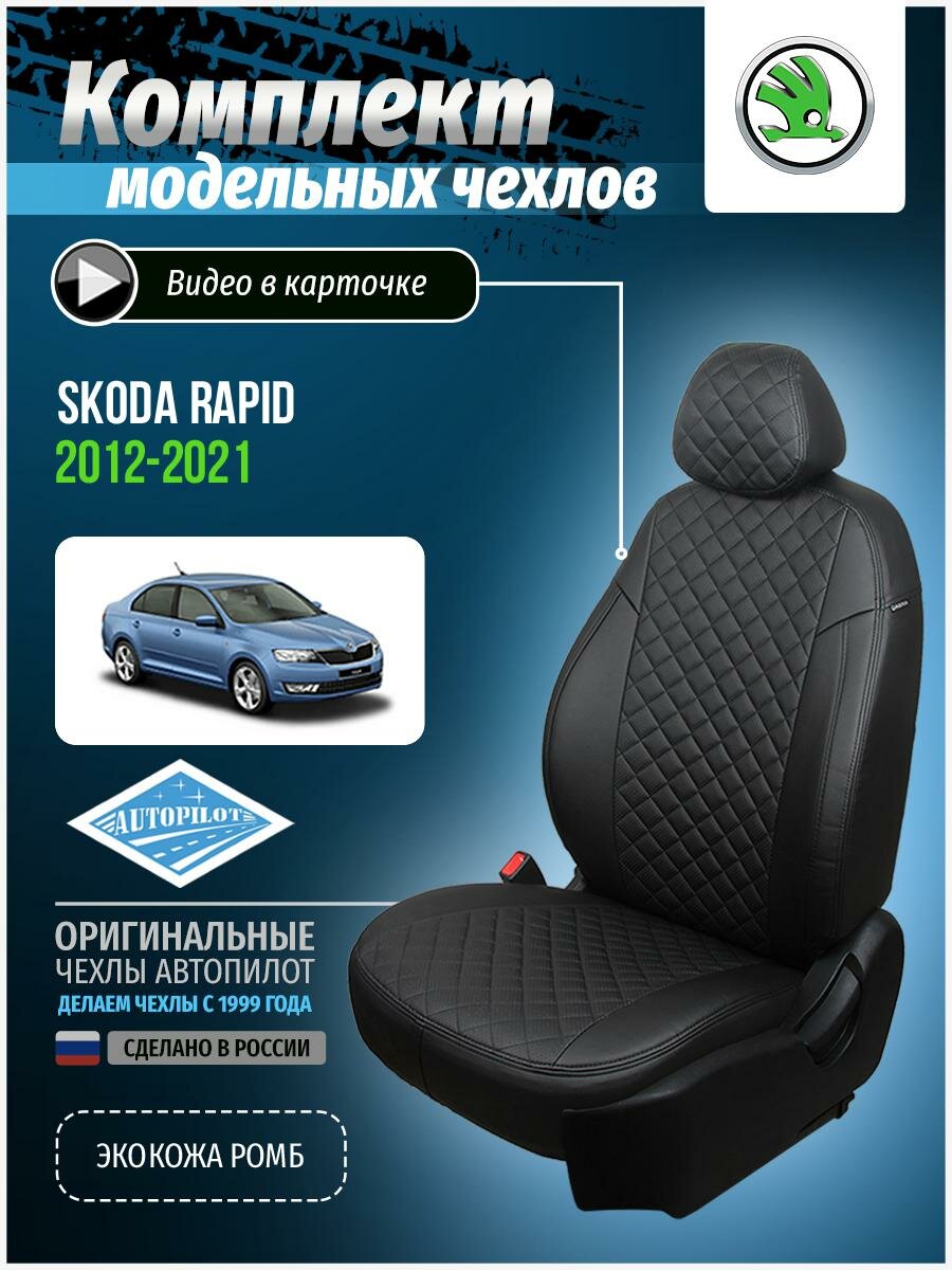 Авточехлы для Skoda Rapid 1 2012-2020 Автопилот Черный Экокожа с ромбом sk-rp-ra-chch-r