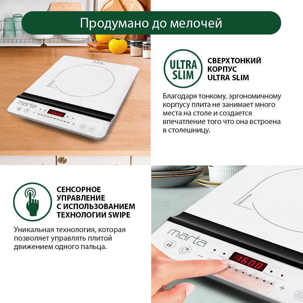 Электрическая индукционная безимпульсная плитка MARTA MT-4210 черный жемчуг