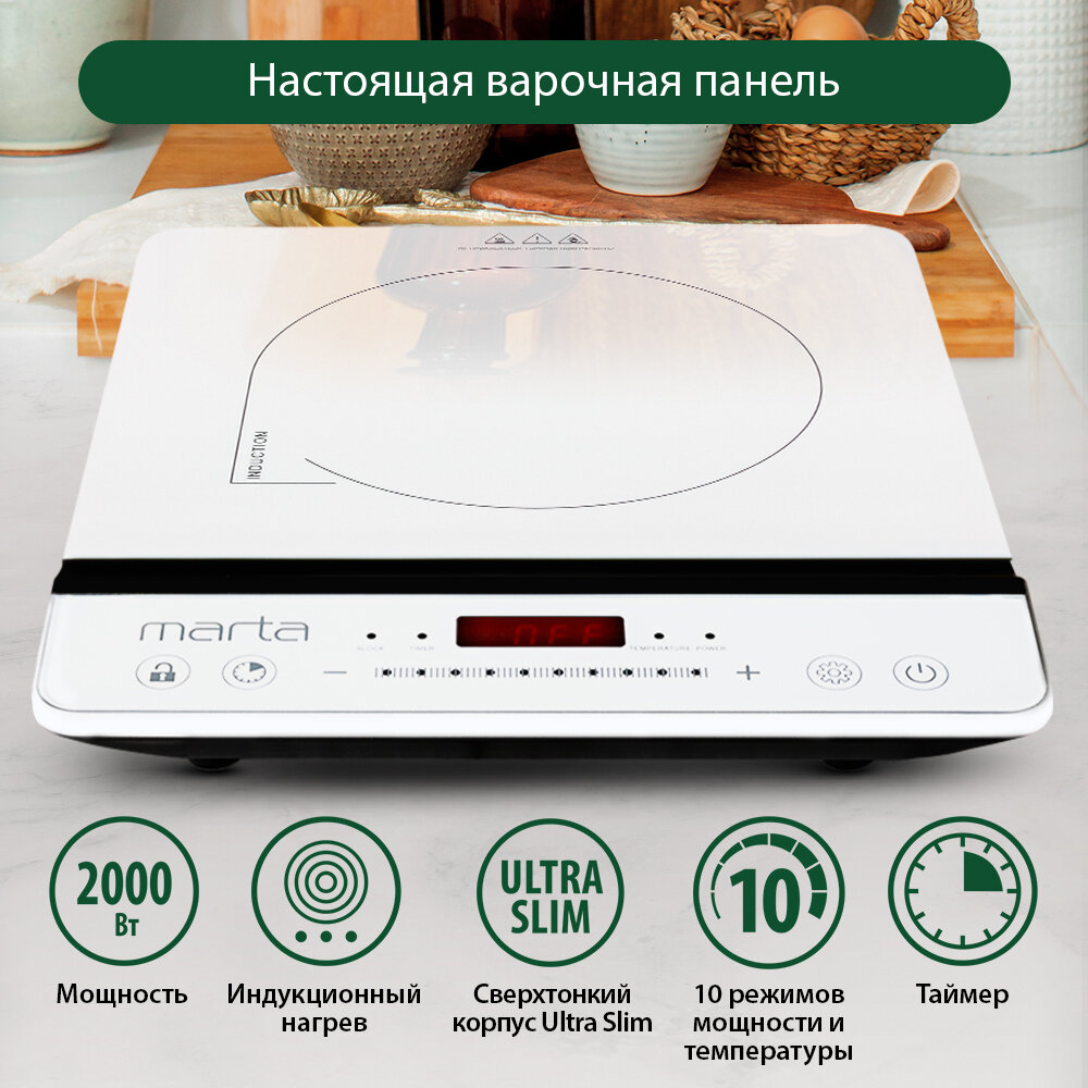 MARTA MT-4210 белый жемчуг электроплитка/ индукция
