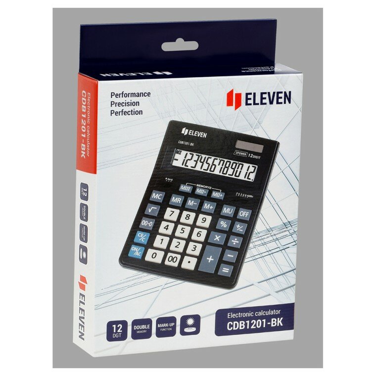 Калькулятор настольный Eleven Business Line CDB1201-BK, 12 разрядов, двойное питание, 155*205*35мм, черный, 339192