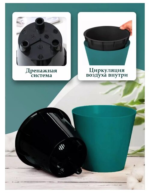 Горшок для цветов с дренажной вставкой InGreen коллекция London, пластиковый, с техническим горшком 1,4л, 1,6л, 160мм, 160х160х145 (IG6204) Тропический лес