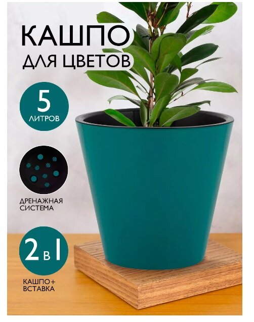 Горшок для растений с дренажной вставкой 10.5 л, тропический лес