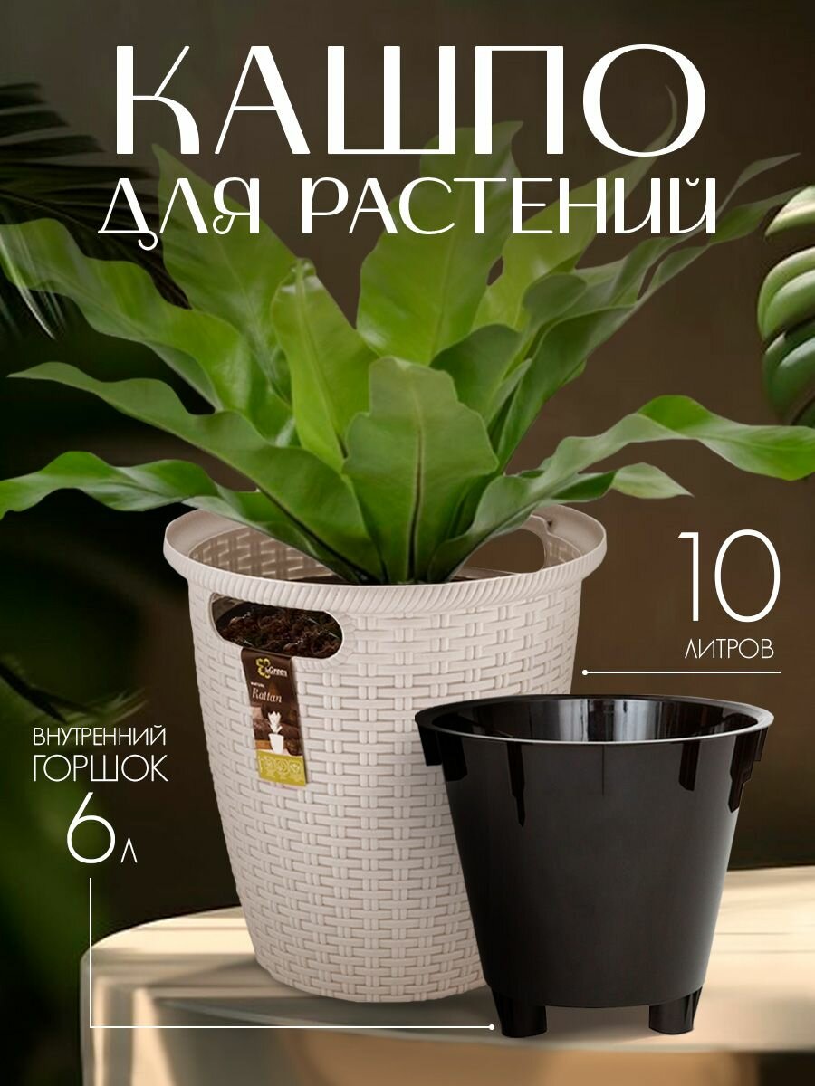 Кашпо напольное Rattan 10л с внутренним горшком 6л сливочный ING6215СЛВ .