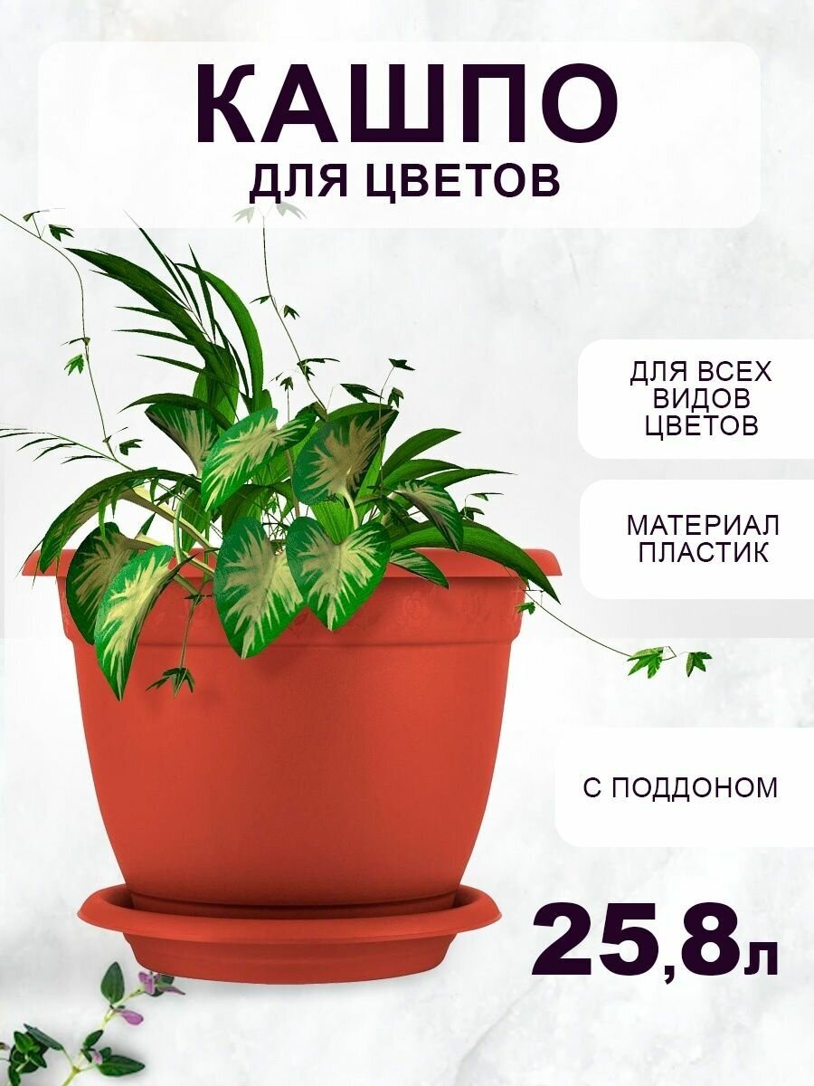 Горшок с поддоном Борнео, 25,8 л, цвет терракотовый