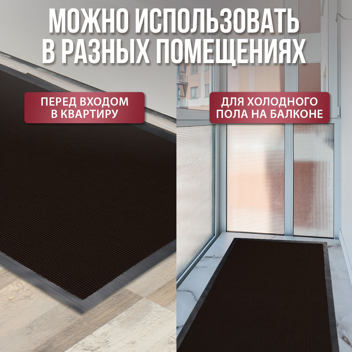 Коврик влаговпитывающий, ребристый в прихожую/противоскользящий/от грязи/снега “TRIP” 120*150 см, коричневый
