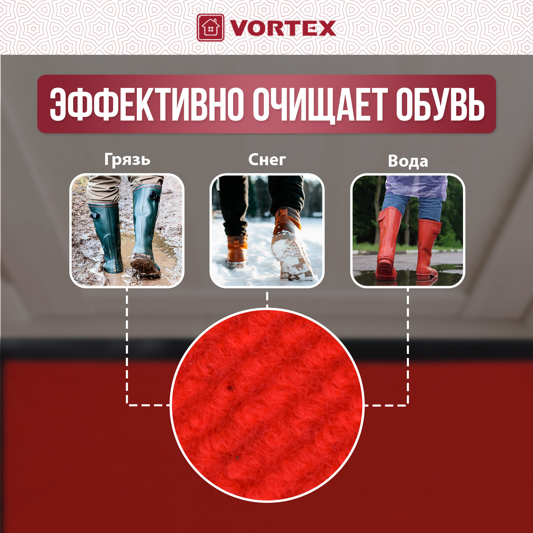 Купить Коврик придверн. влаговпит. Ребристый 60*90см,h ворса=0,5см,красн,п/э,подлож ПВХ 24326 TRIP VORTEX
