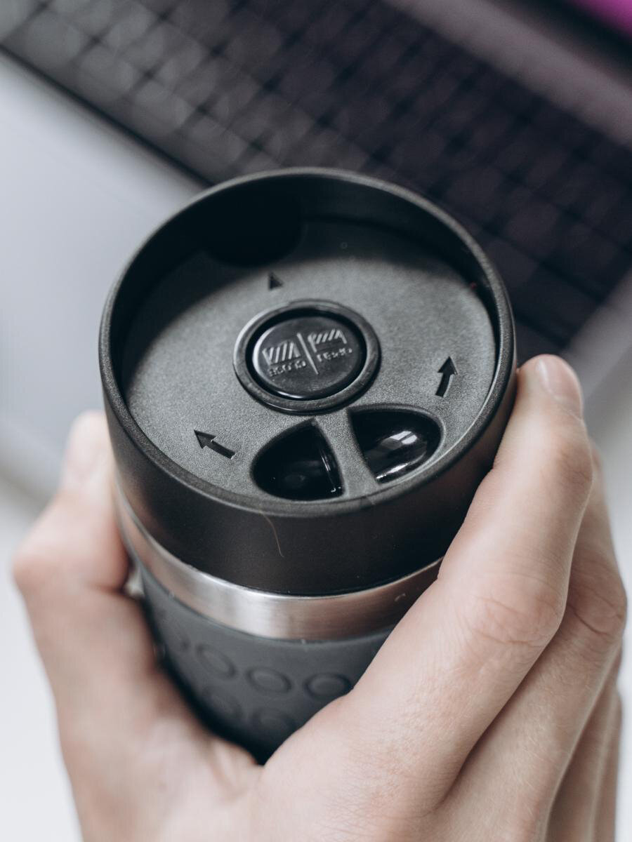 | Плюсы: | компактность, долго держит температуру, не проливается жидкость, удобна в транспортировке, не скользит в руке, не обжигает руку, легко мыть |