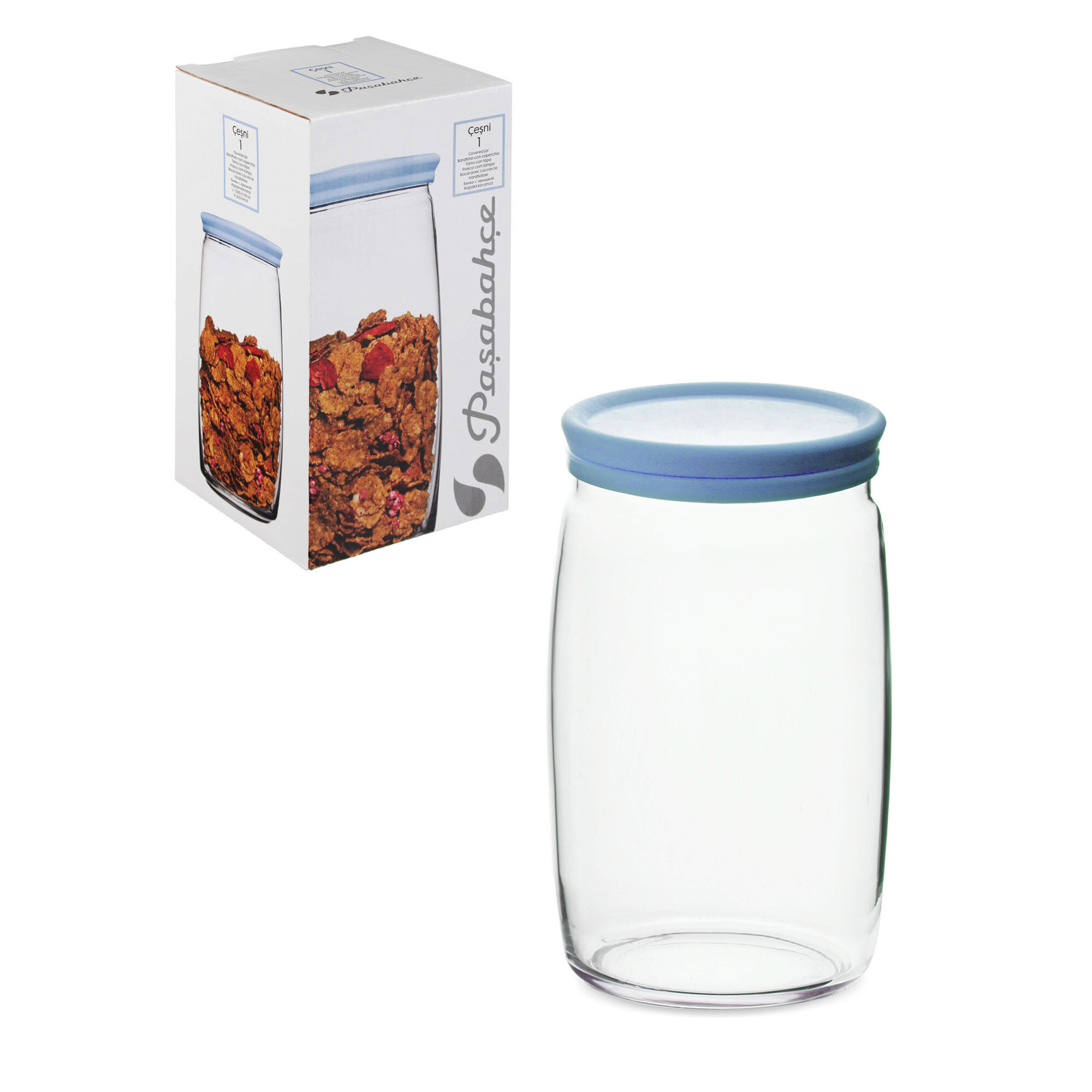 Банка для сыпучих продуктов Pasabahce Cesni 1,5 л с голубой пластиковой крышкой 43023SLB