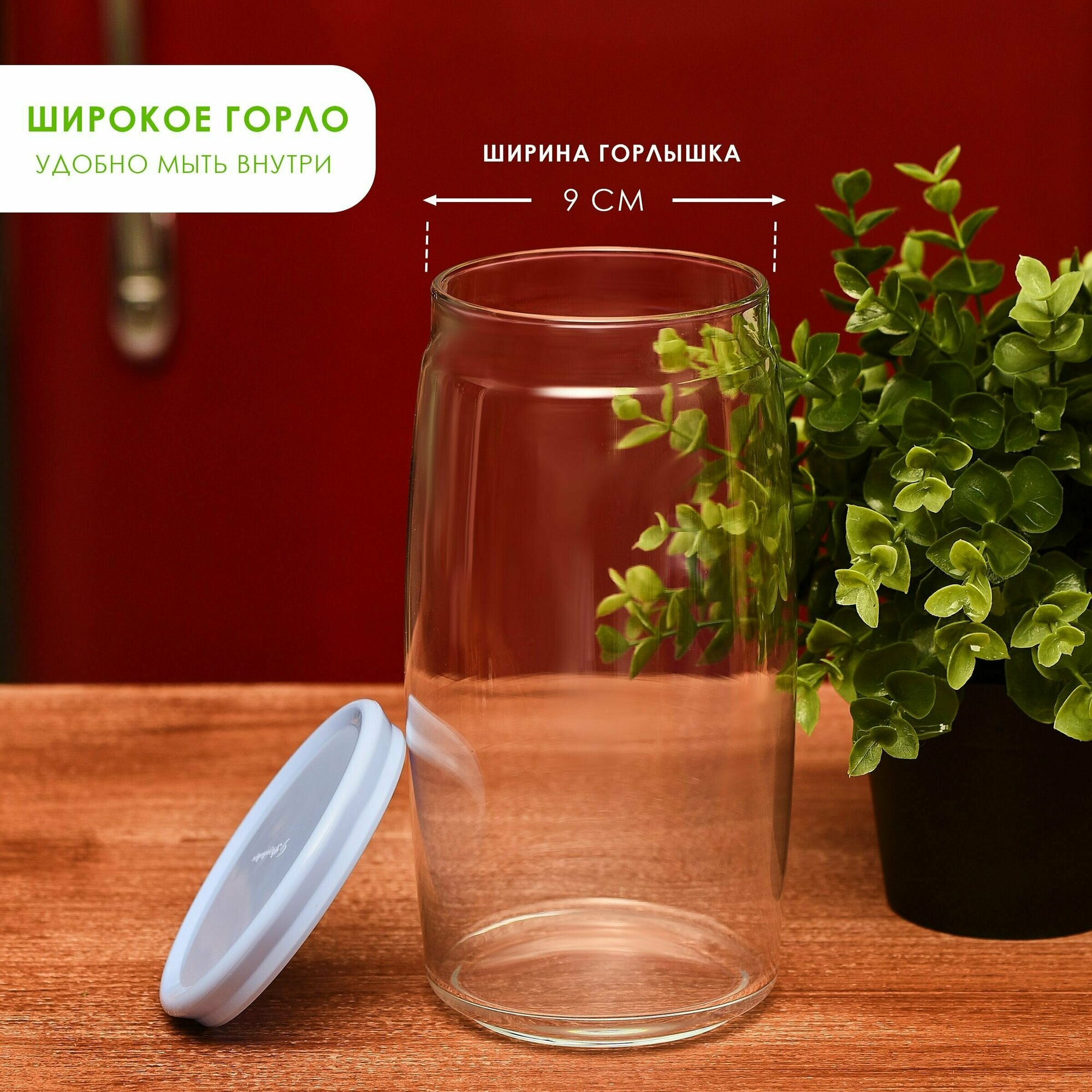 Банка для сыпучих продуктов стеклянная Cesni, 1.5 л, голубая пластиковая крышка