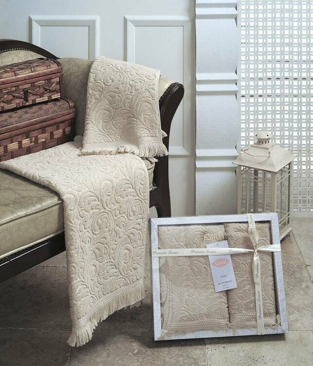 Купить Набор полотенец из жаккарда Karna ESRA бежевый 50х90 (1шт) и 70х140 (1шт)