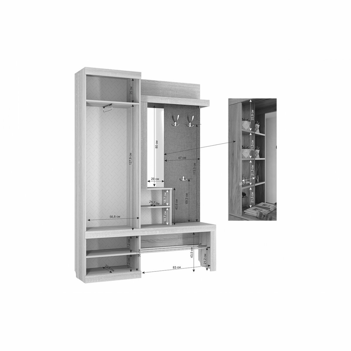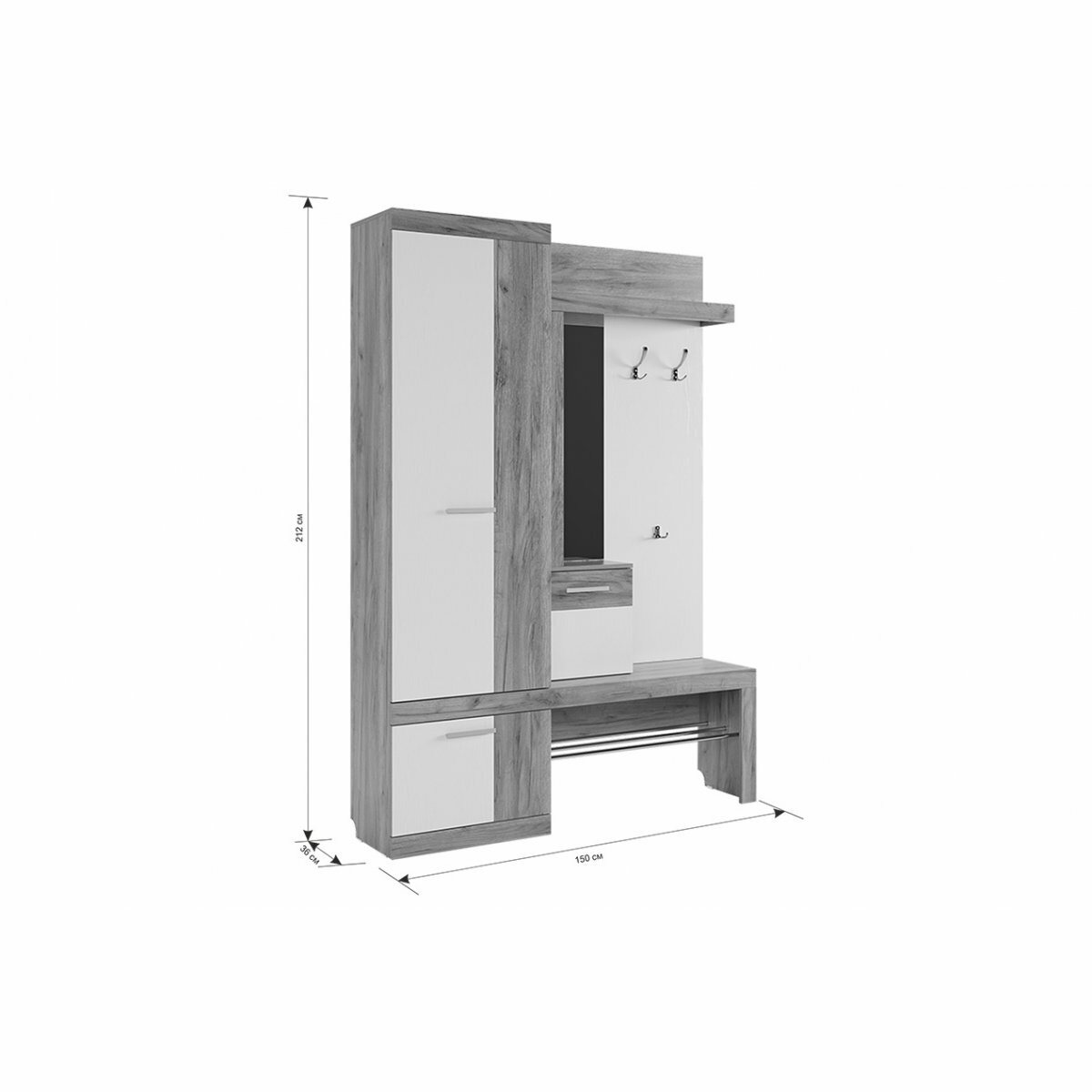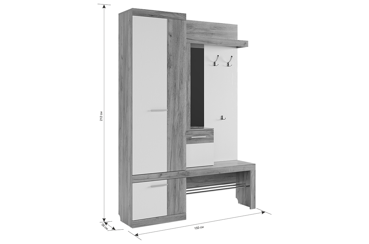 | Плюсы: | Габариты и функциональность для небольшой прихожей. |