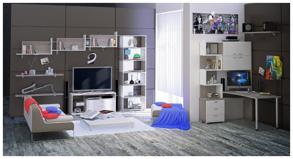 Стеллаж Мэрдэс СБ-10-6 Белый/Шамони 700*300*2130