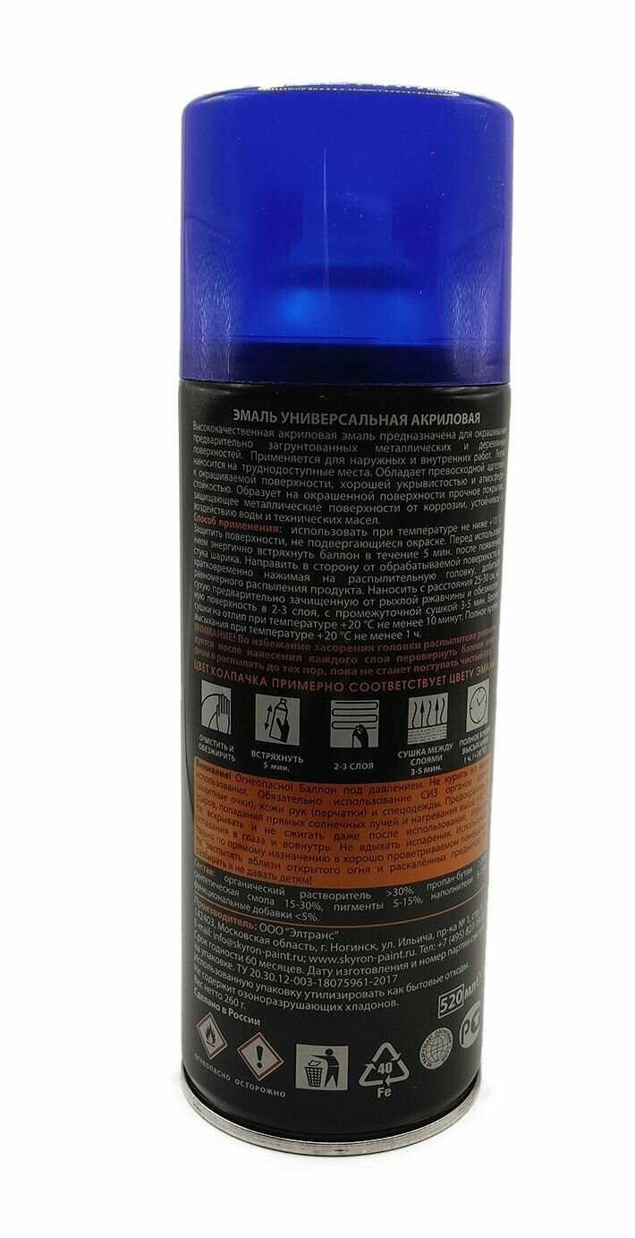 Краска Акриловая 520Мл - Ral 5002 Темно-Синяя Универсальная Эмаль, Аэрозоль SKYRON арт. SR-15002