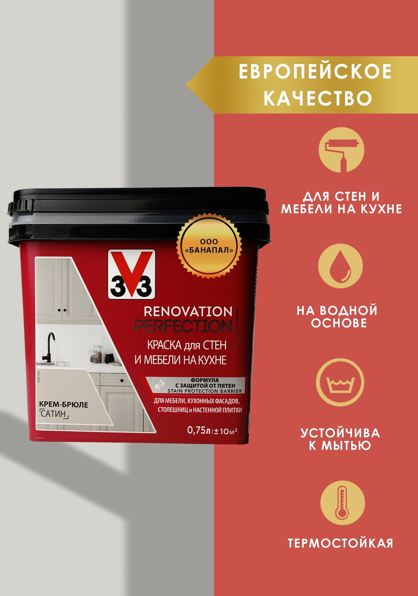 Краска для стен и мебели на кухне V33 RENOVATION PERFECTION