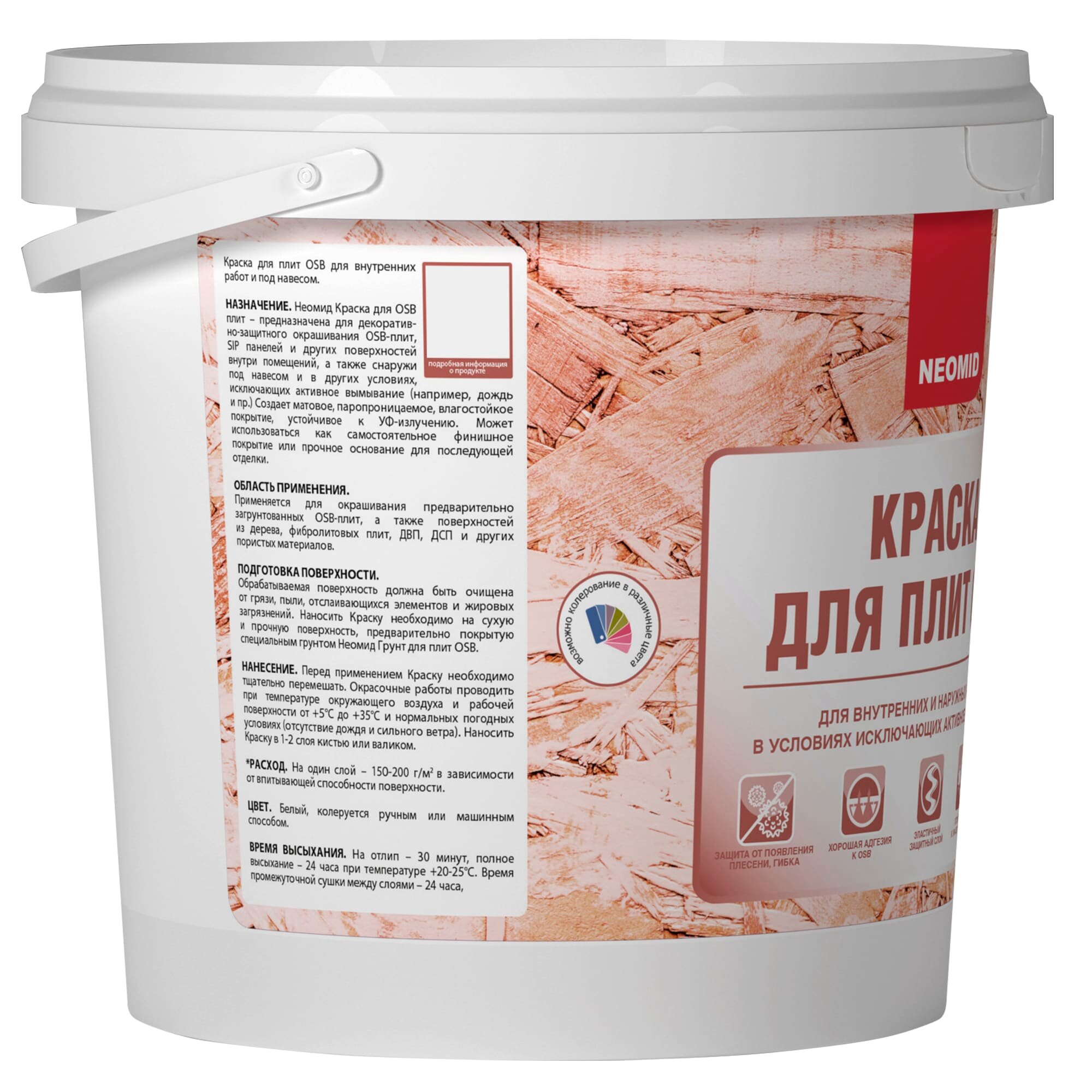 NEOMID краска для OSB-плит и SIP панелей, для наружных и внутренних работ, полуматовая (1кг)