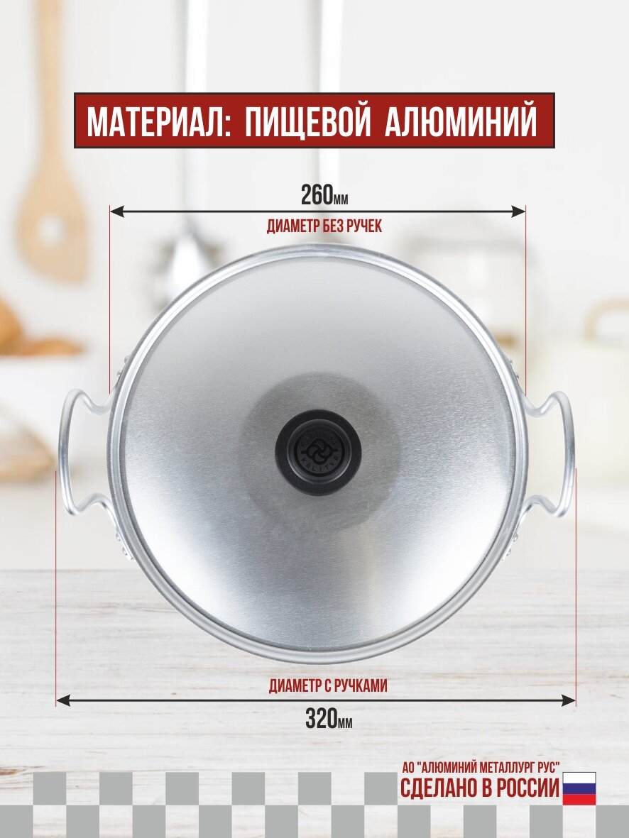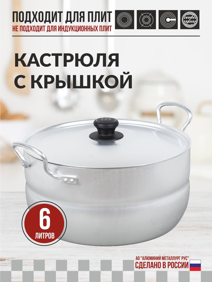 Кастрюля алюминиевая Калитва, объемом 6л с металлической крышкой, для газовых и электрических плит / посуда для кухни