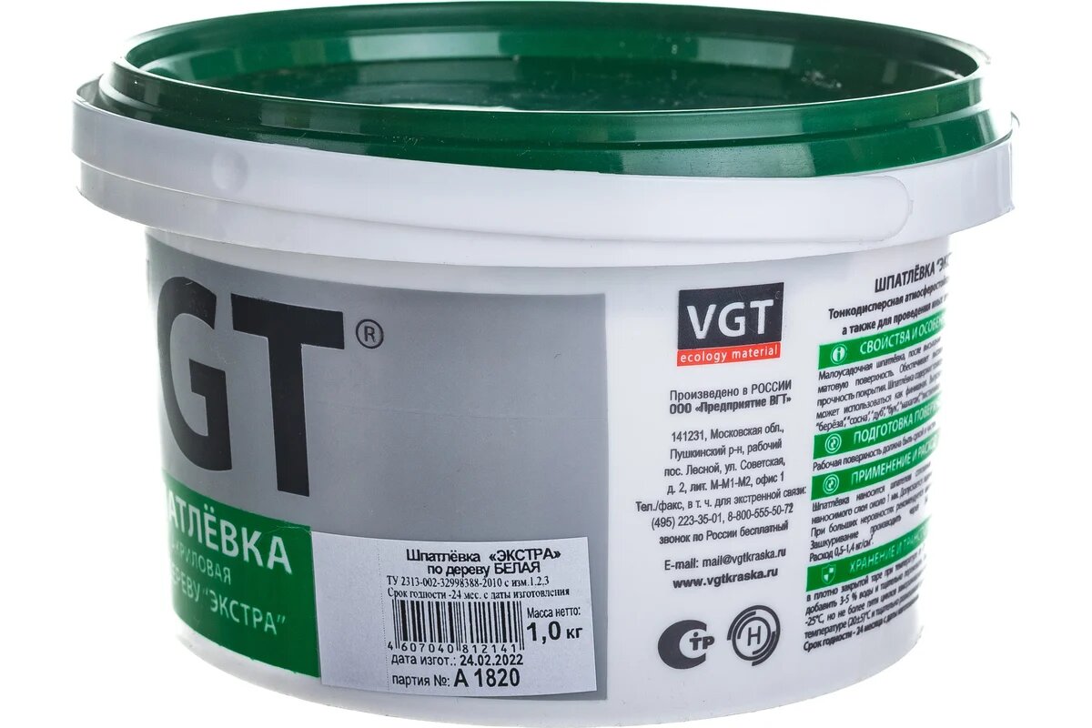 VGT Шпаклевка по дереву Экстра Белая 1кг 25093