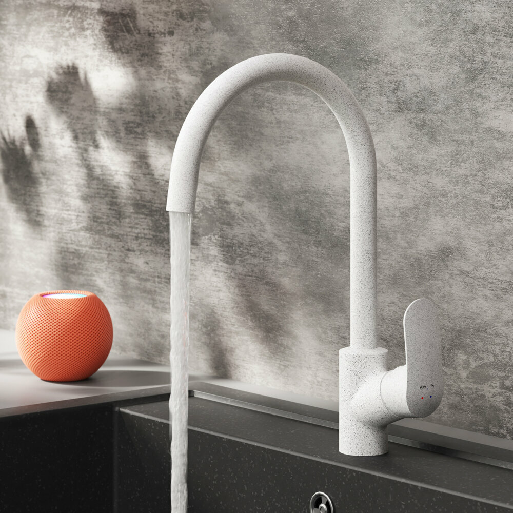 Смеситель для кухни AM.PM Like белый камень, высокий поворотный излив 270 мм, стабилизирующий картридж,латунь