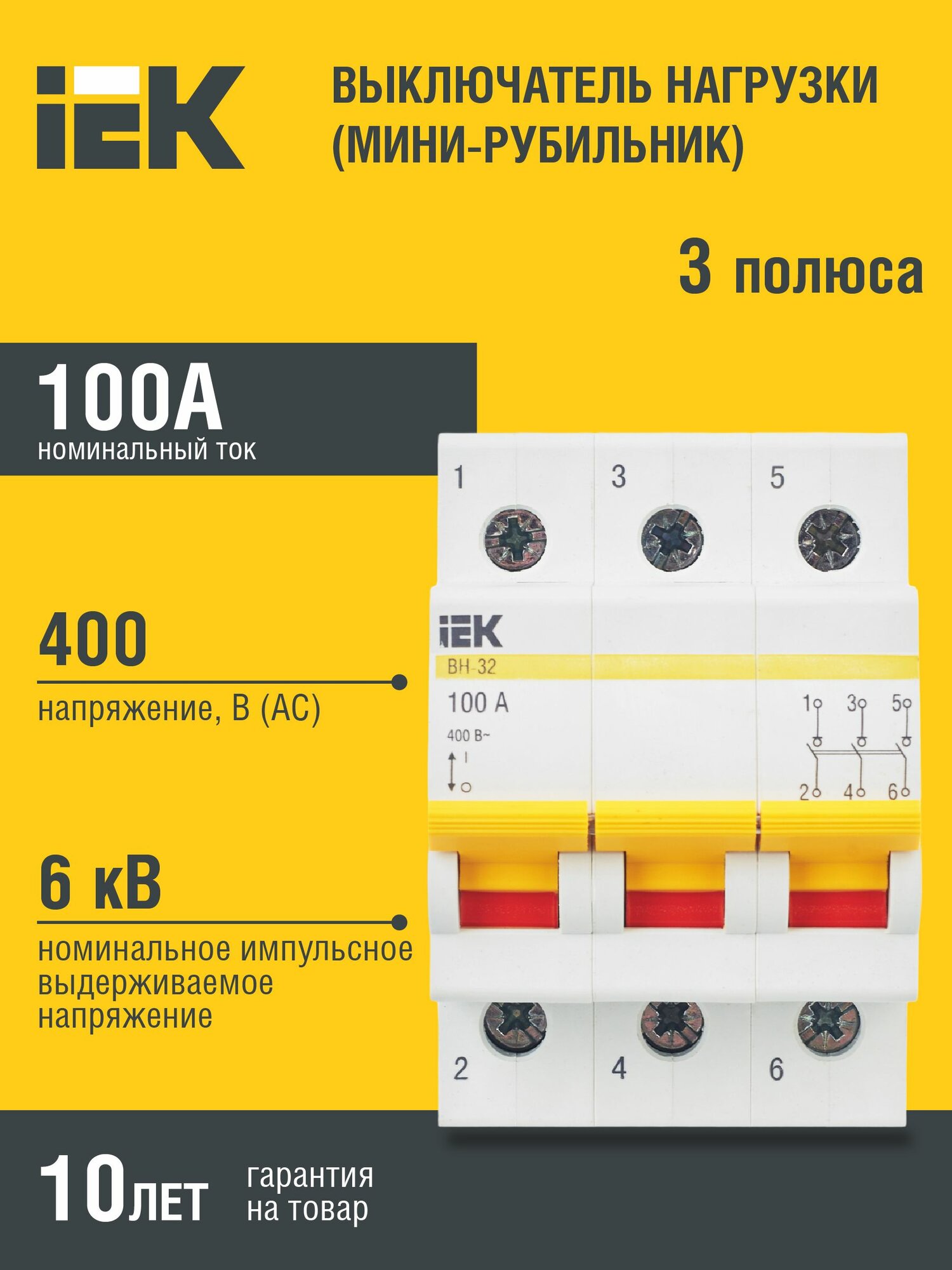 6шт. - Выключатель нагрузки 3п ВН-32 100А / IEK; арт. MNV10-3-100; оригинал / - комплект 6шт