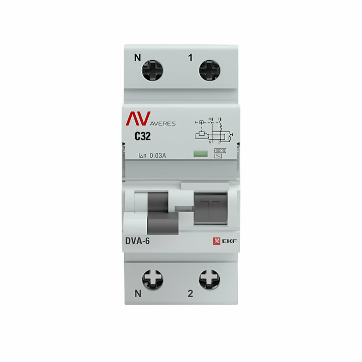 Дифференциальный автомат EKF AVERES DVA-6, 1P+N, 32А, C, 30мА, AC, 6кА