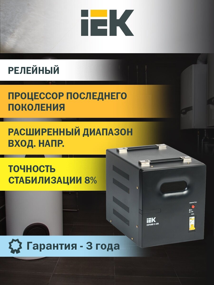 Стабилизатор напряжения IEK Expand 5кВА однофазный черный (ivs21-1-005-11) IVS21-1-005-11 .