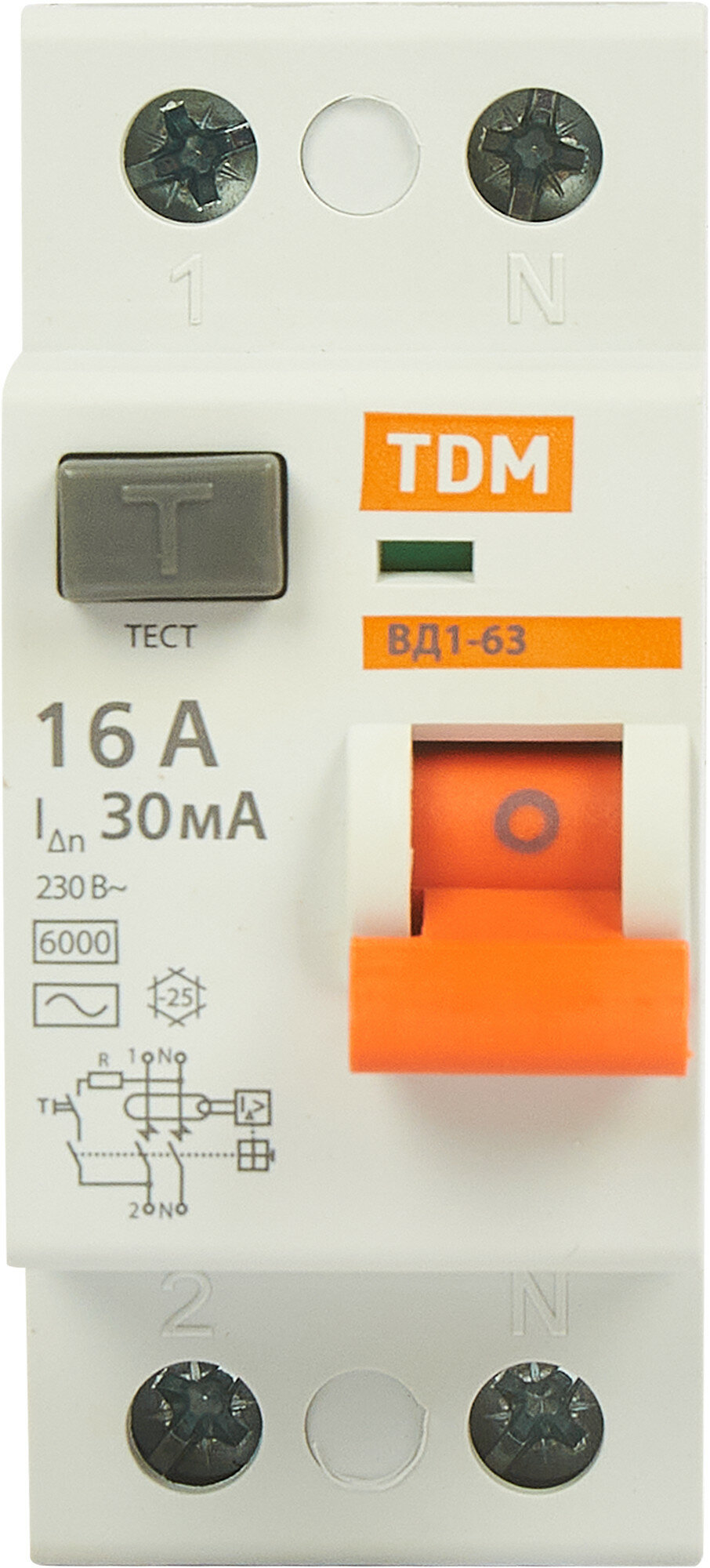 ТДМ Электрик ВД1-63 УЗО 2Р 16А хар-ка АС 30мА / TDM Electric ВД1-63 устройство защитного отключения 2 полюса 16А хар-ка АС 30мА