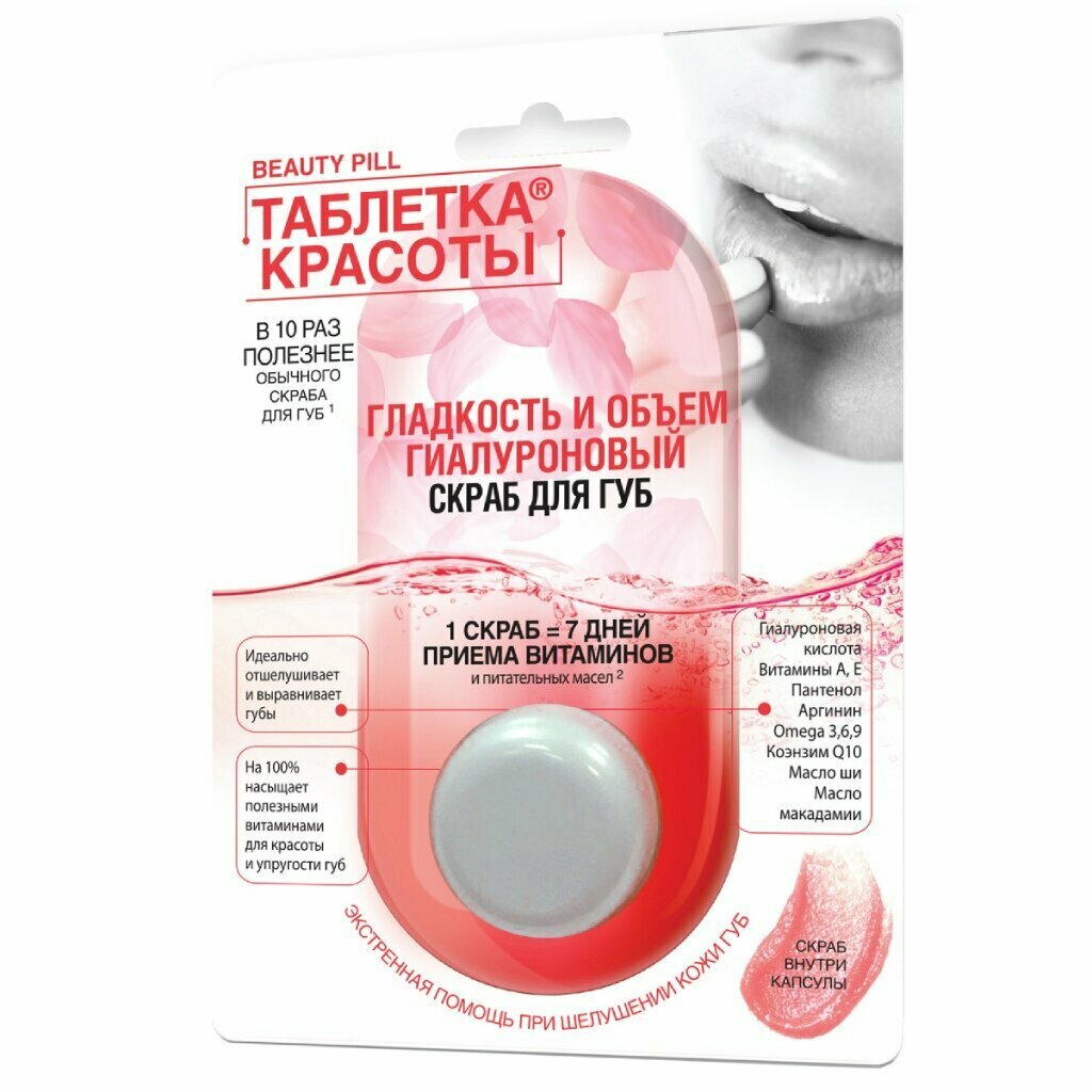Скраб для губ Таблетка красоты Гладкость и объем, 8 мл, 7209 интересное: